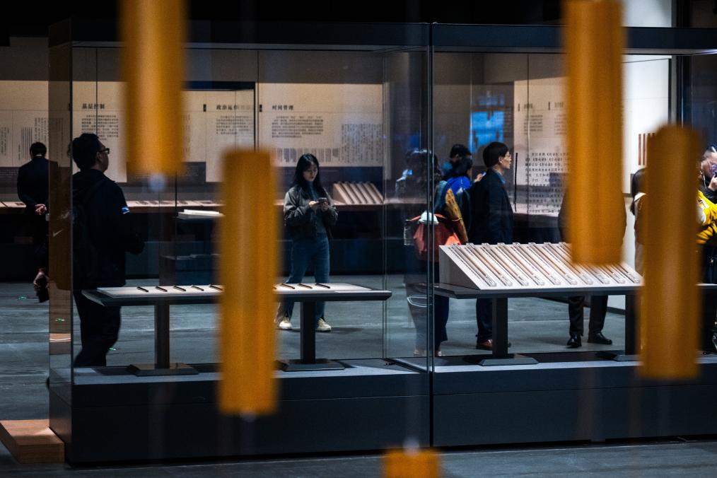 28日,“简读中国——中国出土简牍展”在武汉东湖之滨的湖北省博物馆展出,鄂、湘、甘等简牍大省带来230件组简牍文物,共同勾勒出中华文明从奠基走向成熟的早期中国。