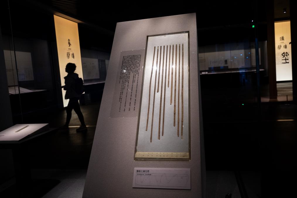 10月28日拍摄的中国迄今发现时代最早的竹简——曾侯乙墓竹简。新华社记者 肖艺九 摄